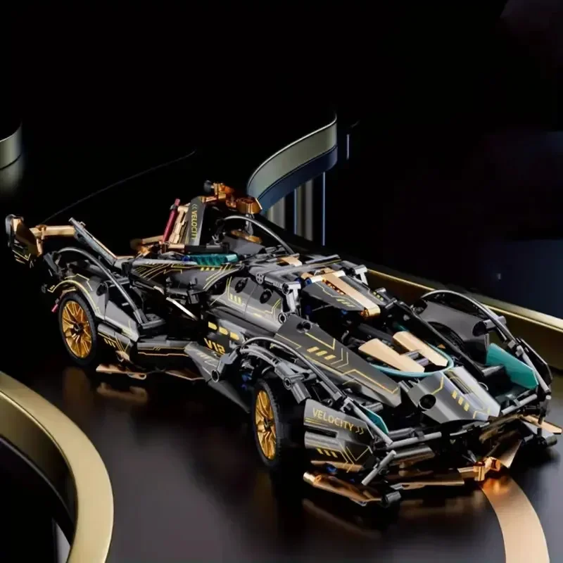 2024 Black V12 Block Roadster RC Tech Racer 1:14DIY Roadster building block assembly Block car toy birthday gift (1280 granule)