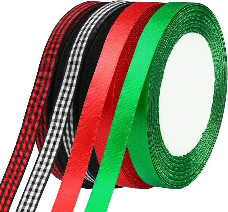 - Christmas gift set: the package includes 4 rolls of 100 yards Christmas gift ribbon, 25 yards red, 25 yards green, 25 yards red and black checked, 25 yards black and white plaid. Different colors and sufficient length can meet your decoration needs during the holidays